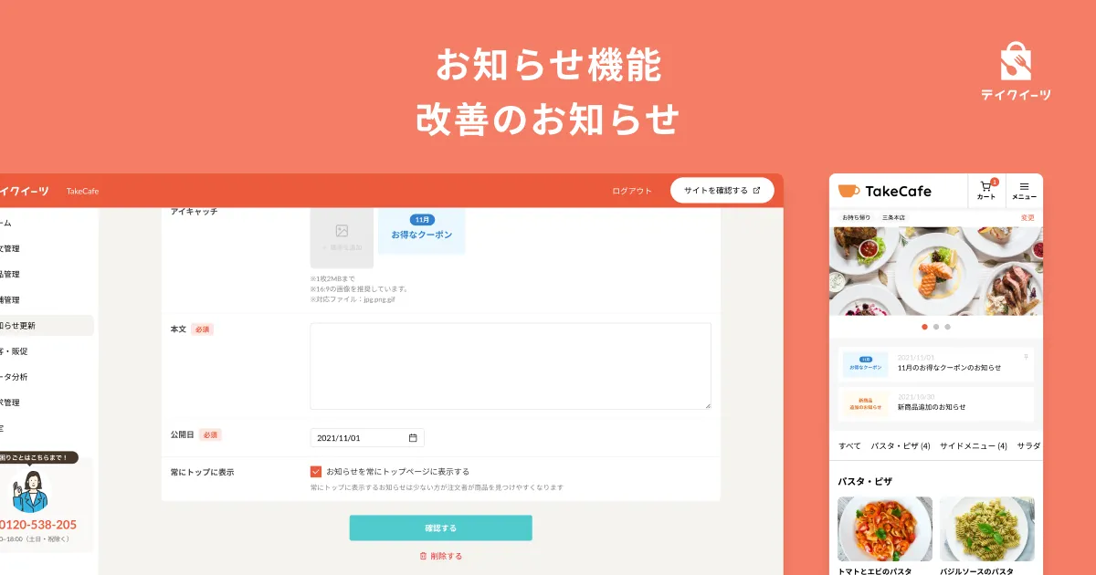11月5日(金)、「お知らせ機能」を改善いたしました。