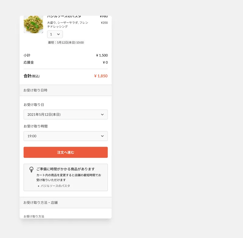 最短受け渡し日時でしか注文できない設定ができるようになります。