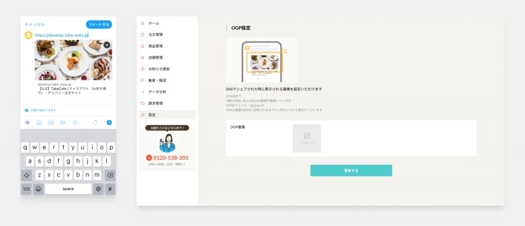 注文サイトがSNSでシェアされたときなどに、OGP画像が表示されるようになります。